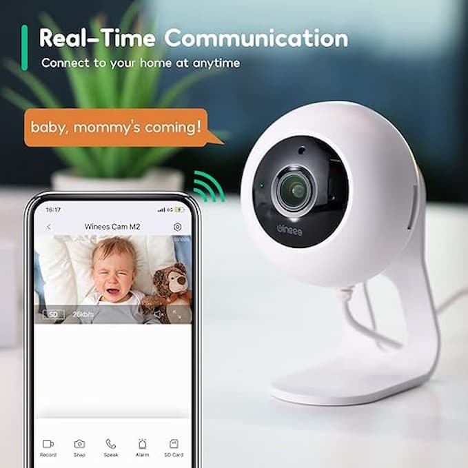 دوربین امنیتی ۲۴ ساعته و ۷ روز هفته و وضوح تصویر ۲K HD -- دوربین امنیتی داخلی Winees M۲ WLAN به شما امکان میدهد اتاق کودک یا حیوان خانگی خود را در هر زمان و هر مکان با وضوح تصویر ۲k زیر نظر داشته باشید. دیگر لازم نیست همیشه نگران دور بودن کودک یا حیوان خانگی خود از دید باشید.