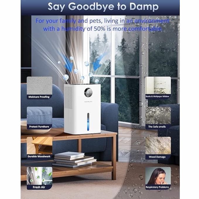 【کاربردهای گسترده】رطوبت‌گیرهای با راندمان بالا برای خشک کردن لباس‌ها، شما را از رطوبت خانه دور نگه می‌دارد. اندازه جمع و جور و دسته داخلی در پشت دستگاه، حمل رطوبت‌گیر را به هر مکانی آسان می‌کند و به شما کمک می‌کند رطوبت اضافی هوا را در اتاق خواب‌ها، اتاق‌های نشیمن، کمدها، آشپزخانه‌ها، RVها، گاراژها و دفاتر از بین ببرید.