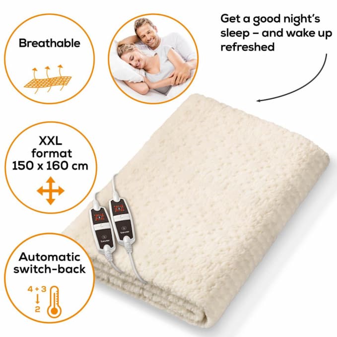 تشک گرمکن XXL برای تختهای دو نفره، اندازه: تقریباً ۱۶۰ سانتیمتر (طول) × ۱۵۰ سانتیمتر (عرض)