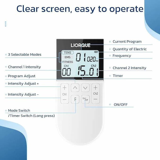 [۳ در ۱ چندکاره] دستگاه تحریک الکتریکی عضلات لیورکو در مجموع ۳ حالت عملکردی دارد: TENS (حالتهای ۱ تا ۲۰): تسکین درد عضلات، EMS (حالتهای ۲۱ تا ۴۰): شل کردن اسپاسم عضلات و Fitness (حالتهای ۴۱ تا ۵۰): بهطور خاص عضلات شکم را درگیر میکند.